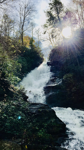 The falls are gorgeous! The parking area is really small but you can walk right up to the falls easily. There is a trail that is easy, pretty flat the whole way. We walked from the falls all the way down to the Sky Valley overlook and back and Strava said it was 2.76 miles. There is an old covered bridge a little before the overlook that is neat. Entering the covered bridge is off limits per signage and washout just in front of it. If you want to go to the overlook be aware you will walk in the grass on the side of the road but the guard rail separates you from the road. Also be aware there are no restrooms at...