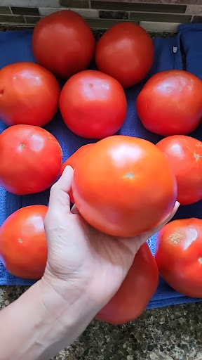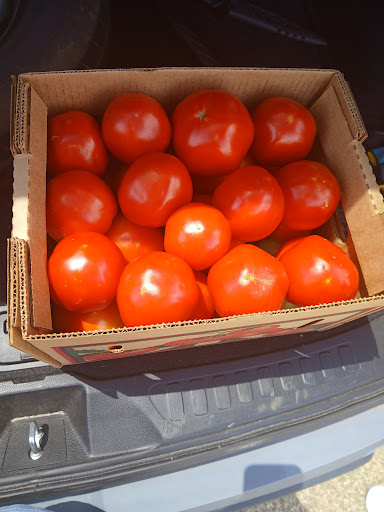 Update from my earlier post.. We were headed to the beach and saw the produce sign and heard of how delicious Slocomb tomatoes are. So we stopped by on a Saturday afternoon. We got the big box ($25) that had some green to them due to the fact that we were headed to the beach and would not be able to make salsa until we got home 4 days later. The folks there were helpful and gave us great suggestions on what to buy based on that. We also bought two large and very heavy watermelons ($6/ea). They also sell other produce items like squash. You don't have to buy big bulk tomatoes. They sell smaller containers of tomatoes. And it was great to deal with local farmers that were super sweet. Will return next year for more. If you never tasted the tomatoes grown in Slocomb, please stop by to get you some. They make great tomato sandwiches. They have a sweet taste. I made 9 qt size jars of salsas and had plenty of tomatoes sandwiches from the big...