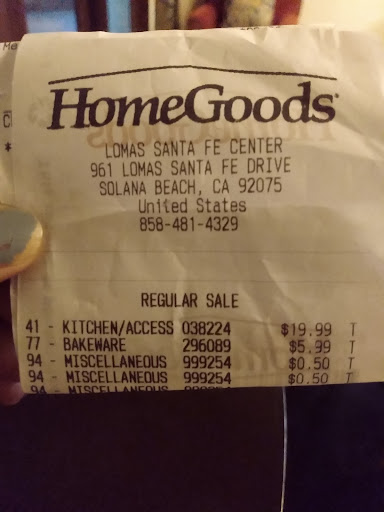 Read moreHomeGoods specializes in banal home accessories. It stuffs its locations with must-have products that add style and personalization to your decor. HomeGoods is also a time-trap. You might not need anything whatsoever upon entering the store, but as soon as you begin to imagine that 4 foot Egyptian statue in aisle four greeting you in your entrance everyday; the spell is cast. You've now entered the world of HomeGoods. You're on their dime now. The Solana Beach Location does an exceptional job of hiding truly interesting items throughout the store. It always feels like a treasure hunt. HomeGoods is also adventurous in its food offerings, most of which are World-Market type products you can't find anywhere else.
