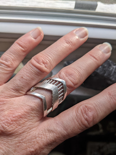 Read moreStopped in on a whim. Was up north with my sisters and we always go to Cedar, MI for Wool & Honey yarn shop, the polish market and pierogis. So glad we decided to cross the street and pop in to Dana C. Fear’s studio shop. When Dana happily showed us the unique responsiveness of her kinetic jewelry, she was delighted with our ‘ooooohs!’. And I was delighted to immediately remember some money I had been gifted for helping a couple of friends, so decided to buy myself a gift. I selected the simplest of her kinetic rings with a single sliding bit and a matching band to stack. Although simple, still gorgeous and intriguing. The motion makes a satisfying click both audibly and by feel…I can’t wait to wear this while I knit, the rhythm blending with the soft clicking of my needles as I craft. Her more complex pieces are absolutely beautiful…and worth a visit to this small town to see her works and let Dana share her artistic vision with you. And buy a piece for yourself -...