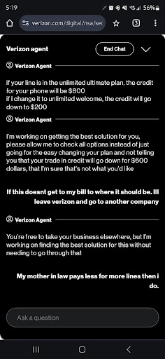 I would rather go to the Mentor location than ever go to this one again. I went in there this past Thursday (6/13) to pay off/upgrade my phone since my screen cracked and is falling apart. One of the female associates greeted me and asked for my phone number etc. Pulled up the account and saw that I wasn't an administrator so I asked if I needed to call my dad (the owner of the account) she said no, and sent the code to my phone number instead to avoid needing to call him. Ok cool! I start comparing phones and prices, and there was a past due balance on the account (because we have been with this phone company for decades, my dad has always paid a little behind and it's never been an issue when upgrading) she made no mention of it. The ONLY reason I didn't upgrade Thursday is because I couldn't decide what phone I wanted. So she tells me to come back after Father's Day and there should be better deals, so I decide to do that. Well today came (6/17) and I went back in there. This time I was not greeted immediately and by the time the girl who helped me on Thursday became free, she looked at me and purposly avoided me and checked in someone who came in after me. Then I was finally greeted by a guy. I told him what I was there to do, and he said he needed to send a code to my Dad since he's the owner of the account. So I call Dad, give him the code, then I'm told there's a past due balance on the account and I can't do anything until it's paid off. I said the account is always behind, and the girl who helped me before never said that was going to be a problem and I was just given a "well, sorry." I've NEVER had an issue with the Verizon in Mentor when it came to this, so I'm not sure why I had an issue here. This one is a lot closer to me, which is why i decided to stop on but honestly, never again. I also think the employees need some retraining if one person is sending ME a code to access the account and another employee is saying he HAS to send it to my DAD and HE has to give it to him!