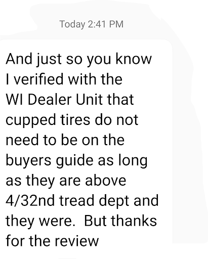 Read moreI had looked at their website at a vehicle and clicked for the Auto Report on it. I had to fill out a form and they would contact me about it. Bob e-mailed, called, and texted me. I had replied to him and told him we would be coming to test drive that car. He informed me it was gone. I replied that we were interested in one other one that they had, so we would still drive down to look at that one then instead. When we got there, Bob came out, I said I was on the website this morning and had talked with someone about a vehicle. He said "That wasn't this morning, I talked to you an hour ago." Which, to me, was a weird comment and not friendly for someone who would like us to buy a car. Anyway, after I said we were looking at their Ford Fusion, he said the price is wrong online. It was listed for $6900 and was actually $8000 because they had just put a new transmission in it. Well not only were we not interested in it after hearing it had that work done, but also disappointed he hadn't mentioned that when he had talked to me before we drove all the way to Somerset. He asked what our price range was, after I told him he said he only had two cars in that range. He showed us a Pontiac Bonneville. The inside was in horrible shape and it had over 200,000 miles on it. I said that was a little more miles than we were looking for. He said that in our price range we wouldn't find something with much lower miles. I told him that we had just test drove a car with 123,000 miles in much better shape and it was still cheaper. So, we test drove this Bonneville anyway and it didn't drive very smoothly, obviously needed an alignment and such. When we returned, he seemed much nicer and willing to negotiate price, however, to me his comments and how he treated us in the beginning were enough to make me not want to buy a car there. Test driving it just enforced...
