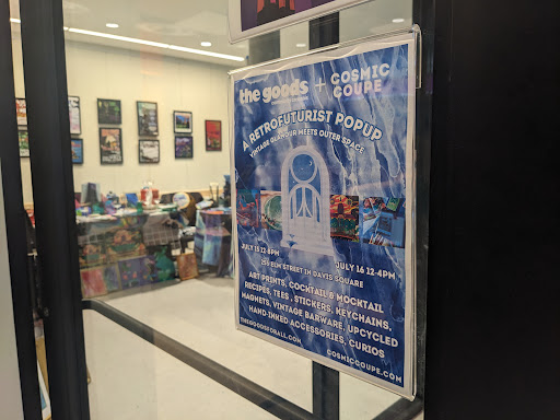 I cannot say enough good things about The Goods! For a while, I have been a customer and have always been happy with the product, prices, and energy of the place. But now knowing how well they treat artists, I am a fan for life. Recently the team has started exploring art popups in their meeting space - I pitched my concept for a retrofuturist popup to the manager Alex and hosted a Cosmic Coupe event during the weekend of Somerville's Artbeat festival - I was blown away by the support the team gave me, both letting me use the (air conditioned!) space and tables, designing and posting physical flyers and projecting animated versions on screens, and directing people toward my booth throughout the day.