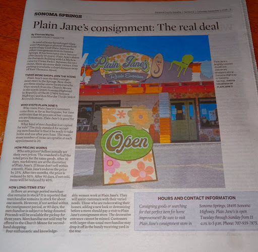 Read morePlain Jane's is a consignment shop like no other! The incredible goods that they re-sell are of the highest quality for such an affordable price! My husband and I found ourselves walking towards each other with both of our arms full. Needless to say the treasure here are THE BEES KNEES. I am so thankful 🙏 I have found Plain Jane's. They are...