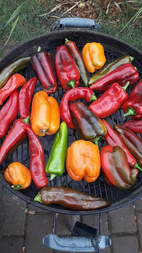 Read moreI hit up the bell pepper person, and snagged a slug of chilies and bells, threw them on the BarBee to make their skin look like Nancy Pelosi's ...waited around for about 2 beers until the blistered skin just fell off like it did on Barbara Walters, and ended up with some spankass fire roasted chilies. The Sonoma's Valley Farmers Market kicks it...
