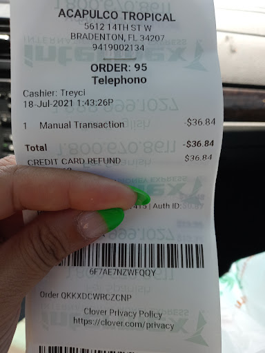 Read moreThe store itself is very nice with a great selection. There's no reason to go back though. I've been there twice. The first time it felt like I wasn't wanted there. I'm not Latin and leave it at that. I went again a few months later, thinking I was imaging things. I was not. I took my teenaged son to show him different selections from conventional grocery stores. After a few minutes he longer wanted to be there. He didn't even want to order from the deli. He said he felt like he wasn't wanted there. I've never understood racism from a business view point. Money spends the same no matter what you look like. At Acapulco Tropical you apparently have to be Latin for your money to be welcomed there. Which is a shame because in America everyone should be welcome but I guess that little corner of Bradenton's not America. It's a shame, it's a very nice establishment staffed by...