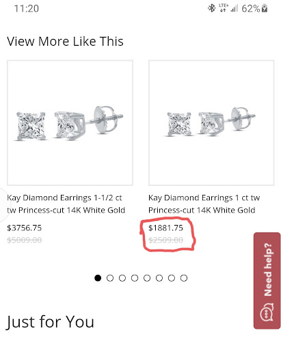 The quality of their diamonds are considered low quality just look it up. I have tried calling the store multiple times but it just rings rings and rings then the call just ends. Then when buying online and you see something that is a good deal and click on it to view it the price jumps up. Then I added the item to my cart thinking maybe it would be different when I start to check out. Well nope that isn't true so I chatted with one of their associates online and they said the price that is in the checkout cart is the price it is going for. I feel like with Christmas around the corner they are baiting the customer's with their low quality diamonds and jacking up the prices, because they think they can pull a quick one over us. As for going in the store I've walked around looking at some stuff, and asked if I could take a look at some stuff. I was told they would be right over, well I was able to look at everything in the store twice and walked a couple more laps and still they were just chatting away. I must of came in during their break or lunch. I was the only person in the store so it wasn't like...