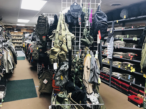 â Parking can be tight and is limited. â Look for the "First Sergeant" rank insignia on a yellow sign. â Lots of boots and clothing items. â Camo netting, backpacks, rucks, E-tools, toys for children to construct, plastic army men, first aid equipment, humanitarian rations, mess kits, morale patches, pins, you name it. â They constantly aquire new inventory, so checking back regularly is advised. â PX or NEX out of what you need or just flat out don't carry it? Check here if you're able, they just might... â Friendly enough staff, Elvis songs playing on the radio, and the surplus does all the decorating.