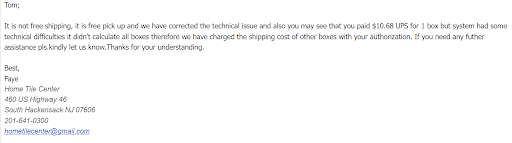 I was out raged when I found out the package was lost and contacted Nicole at stone tile mosaics, She was able to immediately calm me down and reassure me that she would get a replacement order out to us from her inventory instead of reordering from her supplier and She told us not to worry and that she would make sure it was quality tile material.
