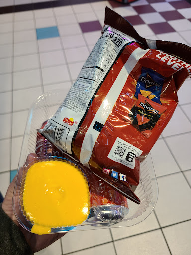 This place is terrible. Its very outdated, think what theaters were like in the late '90s, and the food was a joke. I asked for a hotdog and the Doritos Nachos. I was told the hot dogs were overdone and they'd go back and microwave me one and was handed what you see in the photo as my Doritos Nachos. The cheese was room temp and you can't even make it into nachos because it's in a cup that is connected to the tray. I waited 12 minutes for my hot dog and never got it. I tried to get a refund after the movie but it was a different crew working so no one had any idea about it. I would avoid the place if possible