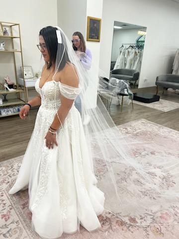 my first appointment I provided an idea of what I wanted (pinterest inspired) and a price range. I also had all my wedding party with me. Natasha an her store made it like my own private event. The atmosphere and store layout were beautiful and inviting. she had a handful dresses ready and walked me through how to even beginning putting all the glamorous styles on.