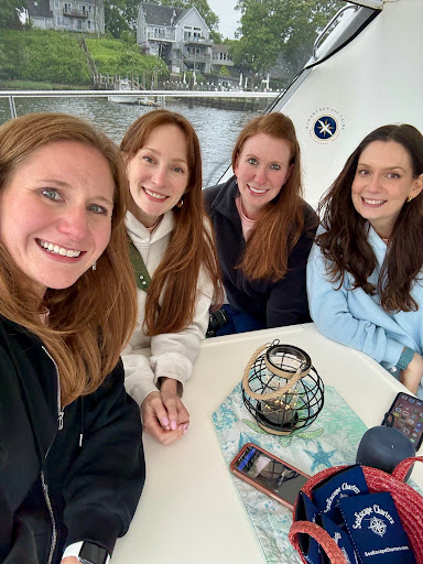 Even though the weather was cloudy with some scattered showers, Don and Lesli were incredibly accommodating and offered to reschedule for a better day. But we were too excited to wait and didnāt mind a little chill or light rain. We wore sweats, wrapped ourselves in blankets, and had such a great time laughing, catching up, and enjoying every minute. At one point, we even jumped in the water which made for such a fun memory.