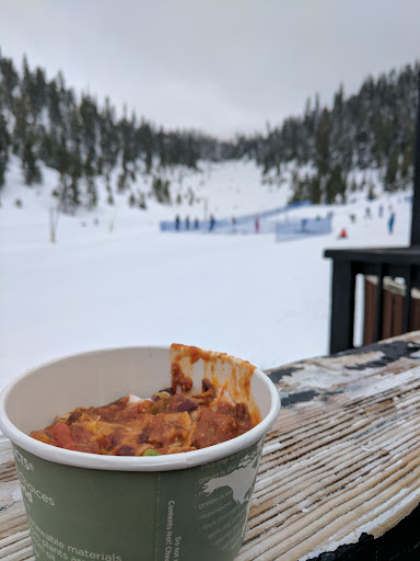 Read moreNice lodge, never very crowded, indoor and outdoor seating. Full grill with sides and burgers, prepackaged sandwiches, fountain and bottled drinks, full bar. Right near the parking lot and off the lift. Prices are ski lodge prices so more expensive than you’d think, but servings are pretty great. Hot chocolate counts as a fountain drink so...