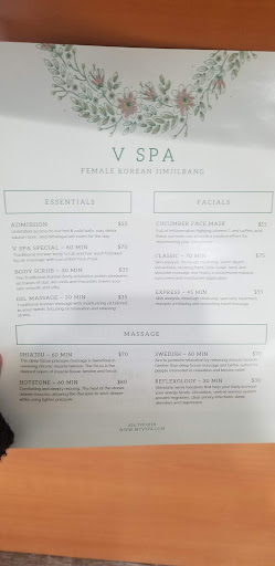 Read moreWorst experience of my life in a spa and I go to spa since I am 13 years old. I love Korean Spa, and I will never go again at that place. They basically scraped my skin badly, I still have scare on moles 4 months after... and had a bad rash for a month. I had to see the dermatologist twice because of it, it cost me $420 with insurance, and had a mole take out as it shape wasn't going back to normal. Worse thing, the spa never apologize, neither check on me after the owner saw my skin herself, lie to my face pretending she wasn't the boss, and make me pay for my treatment saying the boss only allowed her to do a discount... So basically, make me pay for a terrible treatment and told me it was my faute if I was allergic to their (horrible) products... Save yourself pain and money, drive a bit further to Olympic or Crystal Spa and don't go at V Spa! The lady who own and manage the spa have no respect for people! The only thing I was able to do is complaining to the credit card company, who refund me the treatment after sending them pics and dermatologist report. Thanks to a friend who recommended that, I had no idea you can do that. The Spa still cost me $420 of medical bill....Run...