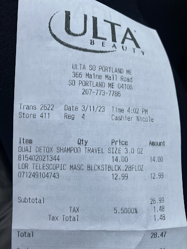 A week ago I went to Ulta by the Maine Mall in South Portland ME. My hair was long, curly, frizzy, and washed out. I looked like a hag and I knew it, but nothing I tried made it any better. My haircut appointment was scheduled with Marissa. She did an amazing job. She deep conditioned my hair and then added layers in a way that framed my face but only lost a few inches in the back. She then dried and styled it. The difference was incredible! My hair, even though she didn't color it, was no longer pale and it felt wonderful. I liked the cut, too. The best affirmation I received about how well Marissa transformed my hair was yesterday. As I was leaving the grocery store a woman came up behind me and as she passed me she said, "You have amazing hair." I may have been blessed with a thick head of hair but Marissa made it amazing. SIDE NOTE: I read reviews about how horrible the customer service is at some Ultas so I wanted to add that while looking at waterproof mascaras I received a recommendation for a brand that I likely never would have tried but I decided to buy it and love it. I also received attentive and courteous service when I checked out. I feel bad for those who had a bad experience. I hope they give Ulta another try. And please remember that closing time is not the same as start shopping time. Don't try to come in under the wire and then get upset because employees are trying to wrap things up with the customers already inside. It isn't fair to the employees. Most people working a day shift should be able to get there at least a half hour...
