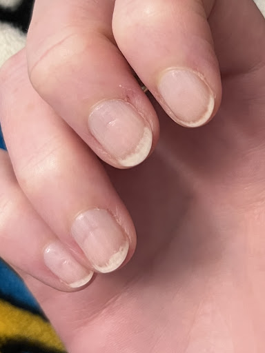 I attached a picture where you can see what my nails look like now after they’ve grown out and since I’ve now removed the gel Antonio did. You can see the grooves in my nail since he filed down too far. When he initially removed the gel, I could tell afterward that my nails were very bendy and pliable. I know that’s probably normal to an extent, that your nails will be thinner and bendy, but my nails were very thick to begin with so it was concerning that they were now so thin after the removal.