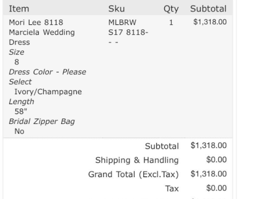 The same exact dress Nelly said it was her BEST ABSOLUTELY BEST price was $1399 ( WITHOUT SHIPPING, WITHOUT TAX). she said shipping will be an additional $100-$150. I found it at Madame Bridal for $1310 ( including shipping AND TAX) AND I will attach the receipt and all. Rin's bridal also had it for 1350 and even offered me a $50 discount before tax. so I emailed Nelly to see if she could price match me just because and all of a sudden now she absolutely can even though she swore up and down $1399 was her best price before I did my research. of course i didn't order from her and I emailed her to let her know how I felt about the situation. that tells you how greedy she is. Also, she sells long veils for 400$ and I kid you not I found the same ones if not better on Etsy for lower than half the price. So to all the future brides out there I know how hard we all work for our money so please do not be fooled by her sweet voice telling you " we don't do this for money we consider ourselves a friend to the bride and we will work with you" it is absolutely bull! please do your research even if you love a dress I am Pretty sure you will find it cheaper somewhere else you just have to look but please do not let this rip off business take your hard earned money and make a fortune at...