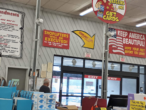 They stock a lot of holiday and seasonal decorations, lawn and outdoor care items, and clothing that rotate throughout the year. They also have rugs, carpet, flooring, clothes, appliances, heaters, groceries, greeting cards, curtains, hardware.