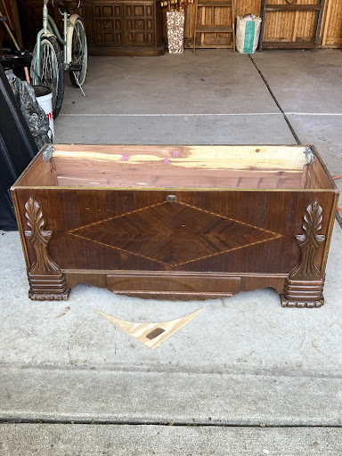 This 1950’s cedar chest belonged to my Grandmother and sadly, over the years, it collected gigantic water rings on the top and the veneer was crackled everywhere. I’m a bit of a DIY’er and thought maybe I could refinish it myself. After gallons of citrus strip and more hours sanding than I’d like to admit… I had to wave the white flag. For something this precious, I knew I had to find a master. And what a master Stuart is. He is a true craftsman in every way. The communication from start to finish was flawless. I was so impressed by his true love of antique heirlooms and his very evident passion for his craft. He helped me decide on the most historically accurate “result” and kept me updated throughout the process. But nothing… nothing could have prepared me for the result. It is so evident that he put his heart and soul into this chest. He not only achieved the EXACT look I wanted, he repaired drawers, secured edge pieces and countless other jobs to make this piece shine. It was only when I was taking these pictures that I realized he had also restored the back of the chest. The attention to detail is mind blowing. I truly don’t think I’ve ever endorsed anyone as much as I endorse Stuart. I could have never dreamed to have a result this perfect! Forever thankful for Stuart’s work to make this an heirloom that will continue to be cherished for generations. (The first 3 photos are “before” and the last...