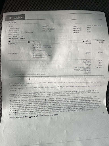 Read moreDo yourselves a favor, read the reviews and definitely don't go to the store had the worst experience I've ever had with the cell phone company ever here. Decide one day to go here to switch from Verizon to Sprint, girl there Jessica told us that we would get $600 for our lines to cover the cancellation of Verizon seeing that we are dissatisfied with Verizon. My fiance had to clarify numerous times and asked her if it was true that sprint will be paying $600 for us to cancel Verizon and Jessica said numerous times yes Sprint will cover you for $600 to cancel both phone lines in the meantime we also traded in our two brand new phones that we had from Verizon they only gave us $200 a phone and gave us the option to use that $200 towards accessories in the store or have a check sent to us in up to 14 days I myself used some money to purchase accessories for my new phone and my fiance decided to have her whole check sent to her down the road. a few weeks later we still receive no checks I call the store ask the manager Dante what's going on with our checks for the phones that we traded in and the manager Dante has no idea what's going on and it's telling us that the salesperson Jessica should not have told us that we would be getting money for our phones when the money was supposed to go towards our Sprint bill well that's too bad because now you have to pay me for my phones after a very long process Sprint decides that they are going to pay us for our phones and send us a check which also took over a month after over a month we finally get our check and quite coincidentally the name is spelt wrong on the check so guess what I called Dante again and he tells me okay he's going to figure this out it's going to take a few days great a few more days all over again also in the process of this we were told as I've said before that Sprint cover $600 to cancel your previous phone contract well the girl at Sprint told us a lie Sprint does not cover $600 towards a contract they only cover 350 towards a contract and the only cover up to 600 if you have a lease for your phone through another company Jessica never told us that either needless to say I am still currently right now fighting this and I will continue to fight this until I get what I want one I'm going to get the money that they owe me for my phone because they took my phone and store which apparently they were not supposed to take the phone in store so they stole our phones granted they're trying to send us a check as they say but the check keeps coming with the wrong name on them kind of funny and they're still fighting this you telling us that they're only going to pay $350 towards our Verizon cancellation fee which I'm not going to stand for it because honestly I wouldn't have switched to Sprint if I knew that they weren't going to cover my Verizon bill do yourself a favor don't go to Southington take the extra drive and go to West Hartford they are much much better and they will help you with what you need to get help with my fiance and I went down to West Hartford and every single sales person there had shock on their face because they cannot believe what they did and Southington and they sat there and told us every single one of them to not give up and to continue fighting until we get what we want because they were in the wrong I am currently after writing this message calling Southington police because our phones are stolen hope this review...