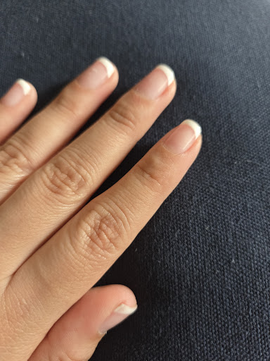 When I was done, I walked up to the front desk to express my concerns. The nails felt flimsy, thin, and the French tips were uneven — some were brighter white than others. The manager insisted shellac is supposed to feel thin and claimed nothing looked wrong. When I suggested what felt off, he asked me what I thought they should do — even though I'm not the expert here.