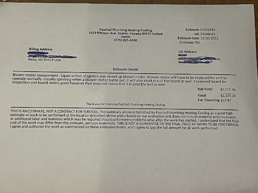 I called the next morning and left a message asking if they could explain the difference. I received a call back and was told he would "go over everything on that", and suggested that if I could find someone to put in a water heater for $1200 - "then go for it". Not wanting to wait potentially for a few more days to have hot water, and knowing that the estimated cost would be explained when they arrived, I kept the appointment.