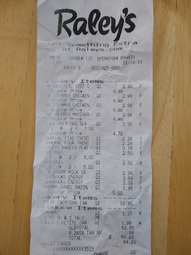 There have also been more than a few instances when I bought something that I didn't check the expiration date and unbelievably, the date had expired months prior to my purchase. My mother has had the same experience at a different Raley's in Reno. Many times some of her items were more than a year over due.