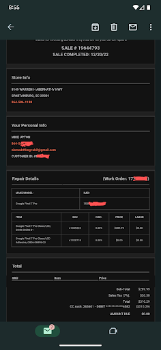 They had the phone over 2 hours and then gave it back and it doesnāt work at all. The female doing the work admitted to trying to put S23 parts in my S22 Ultra phone, breaking the screen ribbon, and then said I had to submit a new claim with Asurion. I called Asurion and they say now that the whole phone would need to be replaced and wanted me to pay a $100 deductible for an issue they caused. See the screen shot. Instead of owning up to the mistake, they made it sound like āadditional damage was foundā. It was not āfoundā, it was created by them.