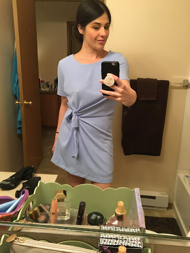 As I was about to try on something I knew I would only wear once, Hannah politely commented that she thought she may have found something, as I had kind of given her the rundown of what I needed the first time. And let me tell you, it was perfect. A powder blue dress that was elegant yet beachy, perfect for not just this occasion, but for summer brunches, rooftop parties, fancier gatherings and cocktail parties.