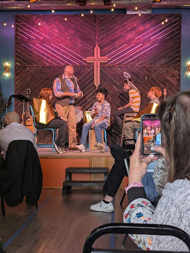 Read moreWe had such a great time!!! My friend and I were going to go a different place, but it was too busy, so we ended up at the Gathering House. It was wonderful! There’s a prayer wall- you can leave a prayer request and take someone else’s and pray for them. The staff was adorable and very friendly! The gentleman told me all about the amazing tea I was going to get to have, what was in it, and where it was from. He was very proud of it. And it sounded fantastic! I got a hot chai, and the gentleman brought it out on a wooden try. He asked if I wanted cinnamon or nutmeg sprinkled on top, so I accepted cinnamon. He was very happy I accepted his offer and proceeded to do what he called “The Pow Pow!” He lit a small torch, set it by my cup, and sprinkled the cinnamon through the flame, sending up fireworks! It was quite dramatic! My friend and I were very entertained. And the atmosphere was...