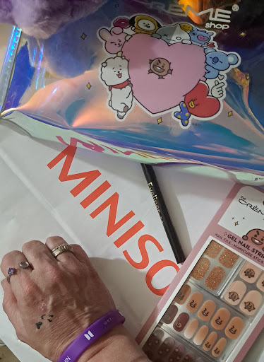 The clerk was super nice & we squeed over being Army. (I had on a BT21 button-up shirt, a Chimmy mask, Jimin Tiny Tan barrettes, and Jimin artist-made earrings & was carrying my Suga Tiny Tan cross-body bag - idk what gave her the impression I was Army! 😏)