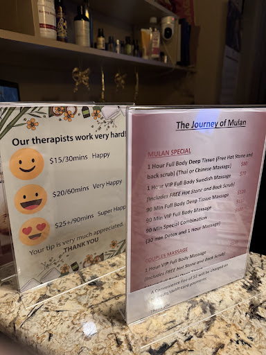 Read moreI'm giving 5 stars because I came in as a walk-in and the other masseuses were already occupied so the manager of the spa did my massage. There were several interruptions with other walk-ins that she had to greet and manage, but she was always apologetic and not only gave me the extra time for the massage I paid for, but also gave extra massage time to make up for the interruptions. Very professional and one of the few deep tissue massages I've had that I felt...