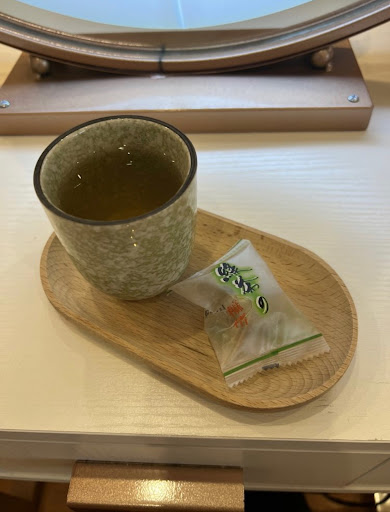 We were lead to the stations to have our hair combed thru and towels attached so we wouldnt get our clothes wet from the scalp treatments. Once we were ready, we were each led to a chair that reclined. Soft relaxing music was playing and the treatments began. It was a very thorough experience. Massage was included for shoulders and neck. I didnt realize I needed this ALL MY LIFE. After your treatment is completed, you are led back to the dry station at which time you they either style your hair or comb thru and you leave with damp hair depending on the package you purchased. Tea and mochi was given during this last process.