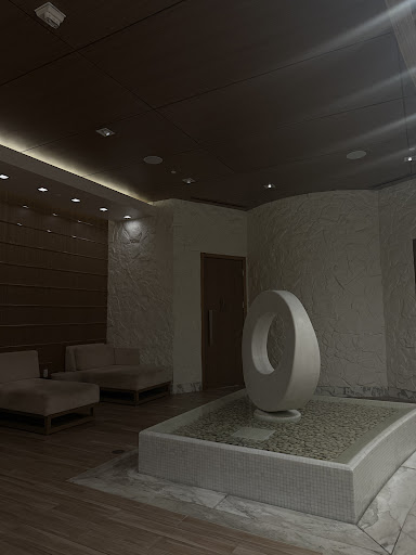 The facility is beautiful. The robe and sandals were very comfortable. The only robe size seems to be L, and you are not asked which size you'd like, as they are already in the lockers, which have a digital code to lock and unlock, so no keys. I could have used an XL to be honest. The facility is gender specific, excluding the outdoor pool and the Hammam. The Quiet Room had well appointed, comfy furniture, and many magazines. There were fresh pineapple and cranberry juices, as well as coffee and pre-made hot tea, and water. Fresh apples were in a bowl, and there was granola available to snack on. I was really looking forward to relaxing in the steam room, but it was out of order, and I wish I'd been told so, and I probably would have skipped the appointment altogether. The Hammam, a very large co-ed room, has a much lower temp of steam infused with Eucalyptus, which was very nice. The sauna was very nice, as well as the hot jacuzzi and cold ice pool (VERY cold!). The hot jacuzzi had areas of slipperiness on the concrete lip that you'd normally grab onto with your hands; I din't know if it's mold, mildew or what, but definitely gross. I went outside to use the pool, and honestly it wasn't anything special. VERY overpriced cabanas as well as the cocktails. The bathroom amenities were very nice, including deodorant, body lotion, hair spray, and gel. Hair dryers were also available, but no combs or brushes to be found, which I thought was odd.