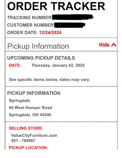I ordered a kitchen table and chair set from Value City Furniture in November 2024, with delivery scheduled for early February 2025. What followed was a months-long ordeal of damaged goods, failed deliveries, and abysmal customer service.