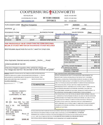 In reference to Coopersburg KW owners reply concerning the 2000 Mack front end loader garbage truck. As we stated we were a new start up company and knew a limited amount about front end loaders. Your company owner stated he knew that the forks were shorter & modified. You also knew that this unit would not do the job as your salesman represented it to do. You also knew that a major waste company had major problems with multi units like this one. This unit was purchased by phone and we relied on Kenworth & Peterbilt dealerships image to give us the honest truth about what we were buying. One Waste LLC has a sister company that operates 75 Peterbilt tractors in a tank trailer operation. We have always had a good relationship with Peterbilt and this is why we contacted what we thought was a reputable dealer for our waste vehicle needs. This causes us to think you committed fraud when you knowingly sold us this unit to do a job when it had a history of nothing but trouble. We think you owe us some solution to...