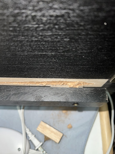 The leaf on the inside of the dining room table is cracked very visibly.