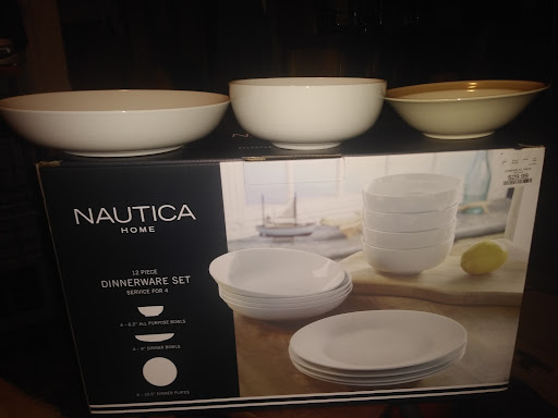 Update: it's still awesome, I've been back several times since my last update, today I picked up a nice 12 piece set of dishes (service for 4) for $29.99 + tax, The package consists of; 4 - 6.3" All Purpose Bowls, 4 - 9" Dinner Bowls, and 4 - 10.5" Dinner Plates. The 6.3" bowls are twice the volume of my old bowls (takes up more shelf space), the 9" dinner bowls would be great for salads/pasta dishes, and the 10.5" plates are all nice too. They have very competitive prices, and these were definitely nicely priced, so overall it is worth the time/effort to check out what they have. In the picture showing the 3 bowls on top of the box, from left to right the 1st is the 9", 2nd is the 6.3", and the 3rd & last one on the right is one from my old set. I just wanted to give you all some perspective on size, because I feel the one on the right side is a common bowl size, so these are big ones that I didn't expect. They have good...