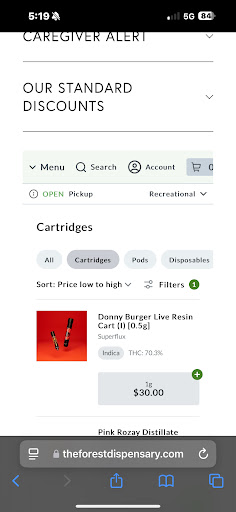 I placed a pre-order online, specifically choosing a 1g cartridge using the weight filter. When I got home and opened the bag they staple, Then I realized I had only received a 0.5g cartridge instead. So, I just wasted $30 on half the product I expected. If that’s not false advertising then, I don’t know what is. Only realizing after I looked at it online again it’s said .5 on top but a full gram one the bottom where you click also on the receipt it says 2.83 g and then below it says .05 g which one is it or is it a ploy to scam