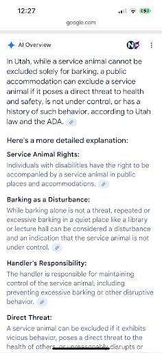 Fast forward to today 2/17/2025, I am being told to leave the premises citing the situation which occurred nearly a year ago! I was also scrutinized, verging on being harassed, regarding the validity of my service animal. The store clerk questioned the validity of my animal on numerous fronts: 1- how is this a service animal? It’s not wearing the same harness as the last time when you came in? Answer: for my birthday I asked for new gear because the old harness was falling apart. 2- you said last time you were here that your dog wasn’t “certified”. So it’s not a service animal. Answer: there is no federal or state body which regulates service animals. At the time I came in I had not completed a public access program but regardless, it is not required. Nevertheless, out of my desire to improve upon my relationship with my service animal I have since completed the public access program and have documentation of such. I then provided that documentation to her but she declined wanting to see it. 3- lots of people get this stuff online and none of it is legitimate. You are from Washington and your tester is from Utah so clearly this is made up. Answer: nope not made up. Please call the tester she will verify that she has met with us face to face to run me and my animal through a battery of tests in order for her to sign off of the certification.