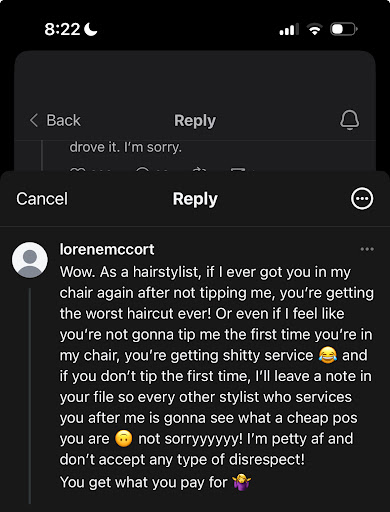 Read moreBeware if you don’t tip you may receive an intentionally bad haircut from lorene. This is coming from herself via her...