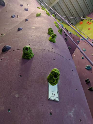they have a no barefoot rule which can be a pain if you are constantly having to take off aggressive shoes and find a pair of sandals or something to swap into some routes had pretty soft rankings (it's hard for me to label a route a 5.9 when all of the holds are jugs and there is no significant overhang or other challenge) something to be aware of is how dynamic the ropes are (expect some stretch and drop when you fall off a route and be careful because the rope can catch a bit in the ATC) the gym is fairly small (especially compared to some of the Earth Treks locations I've been to recently) BUT they do try to cram as many routes up as possible in the space given (which can be a...