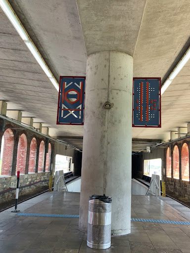 The station itself is above ground but tucked under the bridge's arches, which gives it a unique but somewhat claustrophobic atmosphere. Metrolink has done a decent job retrofitting the space with stairs and an elevator, making it functional if not especially inviting. It's clear this wasn't originally designed for modern transit, but the adaptation is serviceable.