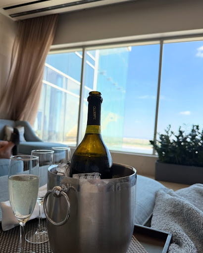 What made the experience even more memorable was sharing it with two wonderful friends. We enjoyed a spontaneous and delicious lunch in our spa robes, which was such a fun and indulgent touch. And as if the day couldn’t get better, I was surprised with a perfectly chilled bottle of Prosecco delivered just for me—true five-star service.