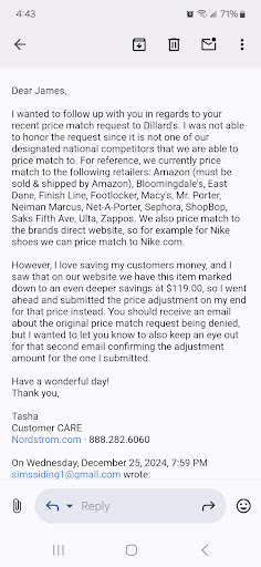 Ā Ā Ā Read moreBeing the only āNordstromā in the state.. youād think they would have better customer service for online returns but nope! Itās āat the discretionā of the store. In my case I have to drive over an hour there with a defective car seat I ordered then waited almost 2wks for it to be shipped to me just to find out if the store will accept my return or not. I ordered thru Nordstrom because ācustomer satisfaction is our goalā. Thatās a lie. I will never shop at any Nordstrom, Nordstrom rack or any of its affiliates again! My son is now without a proper car seat for even longer thanks to this store! How horrible! And while Iām still leaving this review, Ill add that I spoke to āheatherā who was not at all friendly and made my experience all the worse! A little kindness and friendly tone goes a long way. I know I called ten minutes before you close but you donāt need to make some one who paid almost $500 feel like theyāre...