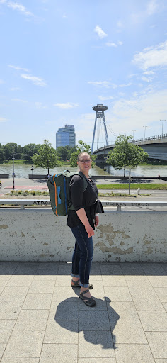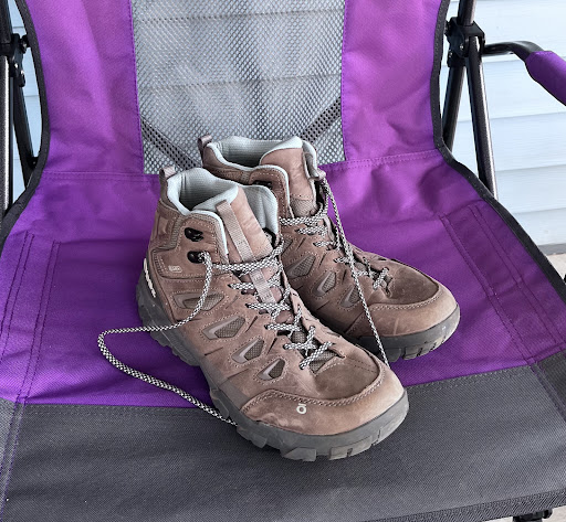 In the picture, I am wearing the Rose Sandal from Keen, which is available at Quest. I've had these shoes for over 6 years and walked thousands of miles in them, and they are still going strong. They wash well and work for both hiking the trails and checking out the sites in the city.
