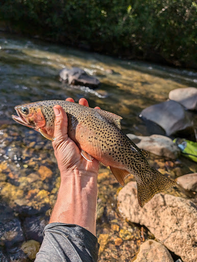 We asked the guide what flies were hot, and where he would recommend two out of staters go, and he was more than happy to show us the hottest fly, as well as a great general spot (Mormon Bend). I had the first fish on before my father in law could get his line in the water, and we had a very successful day catching some aggressive trout on a large dry fly in crystal clear water. 10/10 recommend...