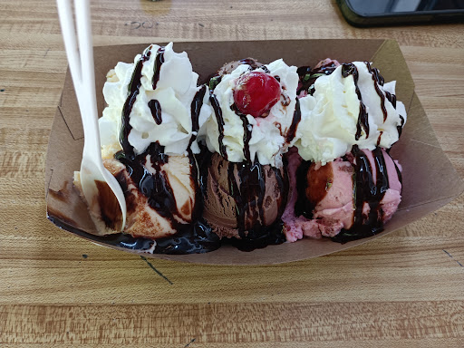 Read moreWaited over 20 minutes for 1 banana split... When I finally got it, it didn't even have a banana in it🤦🏻♀️ Went inside the store looking around, and wanted to look at some throwing knives to purchase for actual use/practice- wasn't allowed to pick them up to be able see their weight (which any person purchasing them would naturally ask to do, unless buying for novelty/display). Just overall a frustrating visit. Which I understand the reasoning, but it's not like me and my boyfriend are some young kids just wanting to play around (asking for ID instead would be a better...