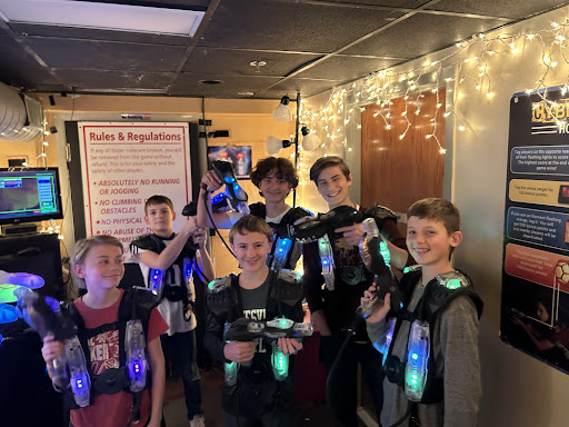 Great laser tag but dirty environment. We had our kid's birthday party here and the kids all loved the laser tag fun, but the table and seating area where we had pizza and cake was very dirty, untidy, and unkept, and the bathrooms were the same. Would not recommend for family events unless management seriously cleans up their event areas and purchases new tables and chairs (the ones they had were extremely worn, dirty, and broken. the table and coffee table were caving in the middle and definitely need replaced). Additionally, the seating area was very cluttered. It was hard to walk around, and the space was very small. Also it is hard to find, located in a back alley without signs telling you were to go. Parking is very difficult. Hard to get to, maybe fun for adult events, but not for child parties or family events. We want a clean environment and this...
