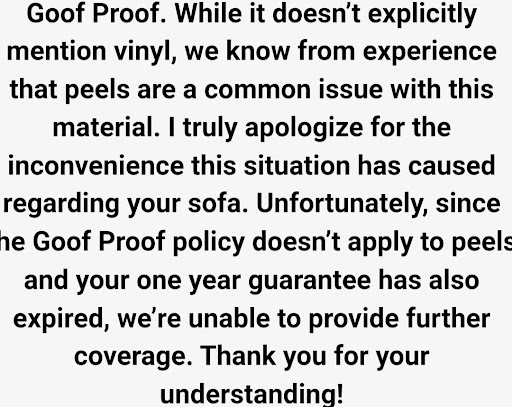 Read moreHorrible customer care!! One of the delivery people wasn’t wearing a mask!!!I ordered the bobtastic white glove service of $120 dollars. I was told my delivery would be here the 24th I missed a day of work and my delivery didn’t come then on the 27th it came and they only brought in my furniture and left me to assemble it and clean all the plastic and cardboard my self and then I had to get my own drill and screw in the legs of the couch. I then called customer service to request a refund because the white glove service was not done and that is what I agreed on not just shipping and if they were only going to drop it off I would of just settled for pickup and never payed that money for shipping and assembly and cleanup like I did. I was on the phone for over 1 hour talked to 1 regular person and 2 supervisors who essentially told me I have to pay for their mistake. I asked the last supervisor “ So am I paying for the mistake you and your delivery people made then? I didn’t agree to just shipping so why do I have to pay for something I didn’t agree to? I ordered the full service so tell me how much it cost to pickup and how much the white glove service is anything else is your problem and not mine”. She said still I have to charge you the bobtastic threshold delivery and I said no you don’t because that is not what I agreed to. I bought the white glove service and since I did not receive that and only a waste of time then I’m not paying for bad service that I didn’t agree to when I made my purchase. One supervisor said they can give me a 50% discount on the delivery which would be $60 and the last supervisor said only the difference which is $30 dollars. I told them so now I have to still pay $90 dollars for your mistake and having your worker come in my house without a mask and bang up my wall and door because they were not...
